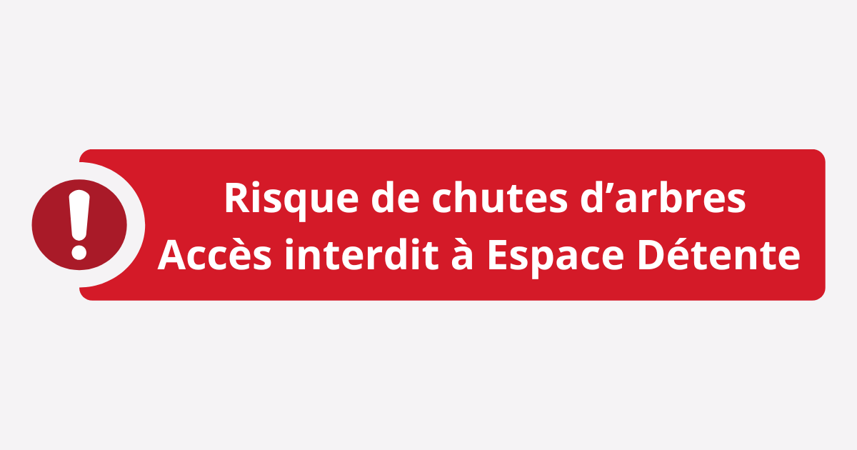 En raison des conditions météorologiques défavorables et des risques possibles de chutes d’arbres ou de branches, la commune a pris un arrêté afin d’interdire l’accès à Espace Détente de ce jour jeudi 8/01, 14h, au vendredi 09/01, 23h59.
